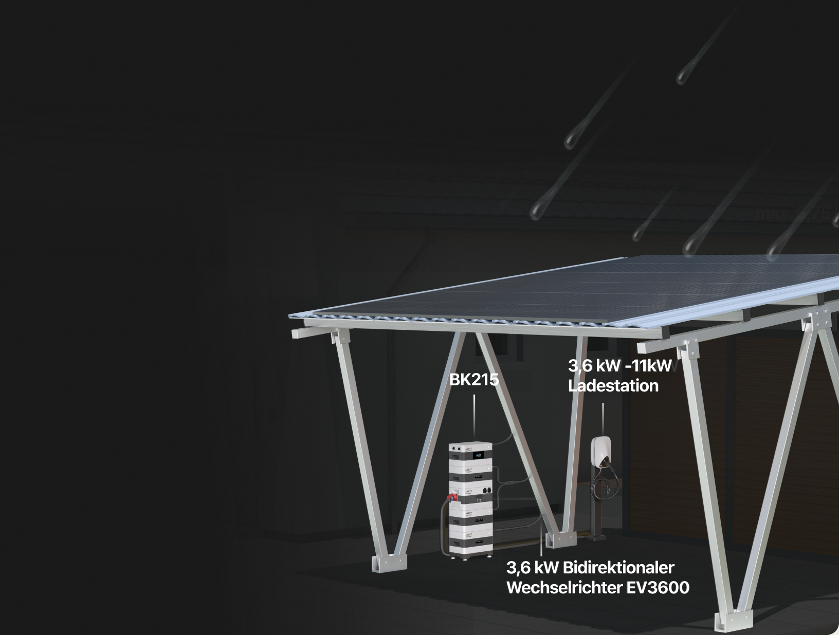 Inselfähig dank PV-Modulen und integriertem bi-direktionalem Wechselrichter EV3600