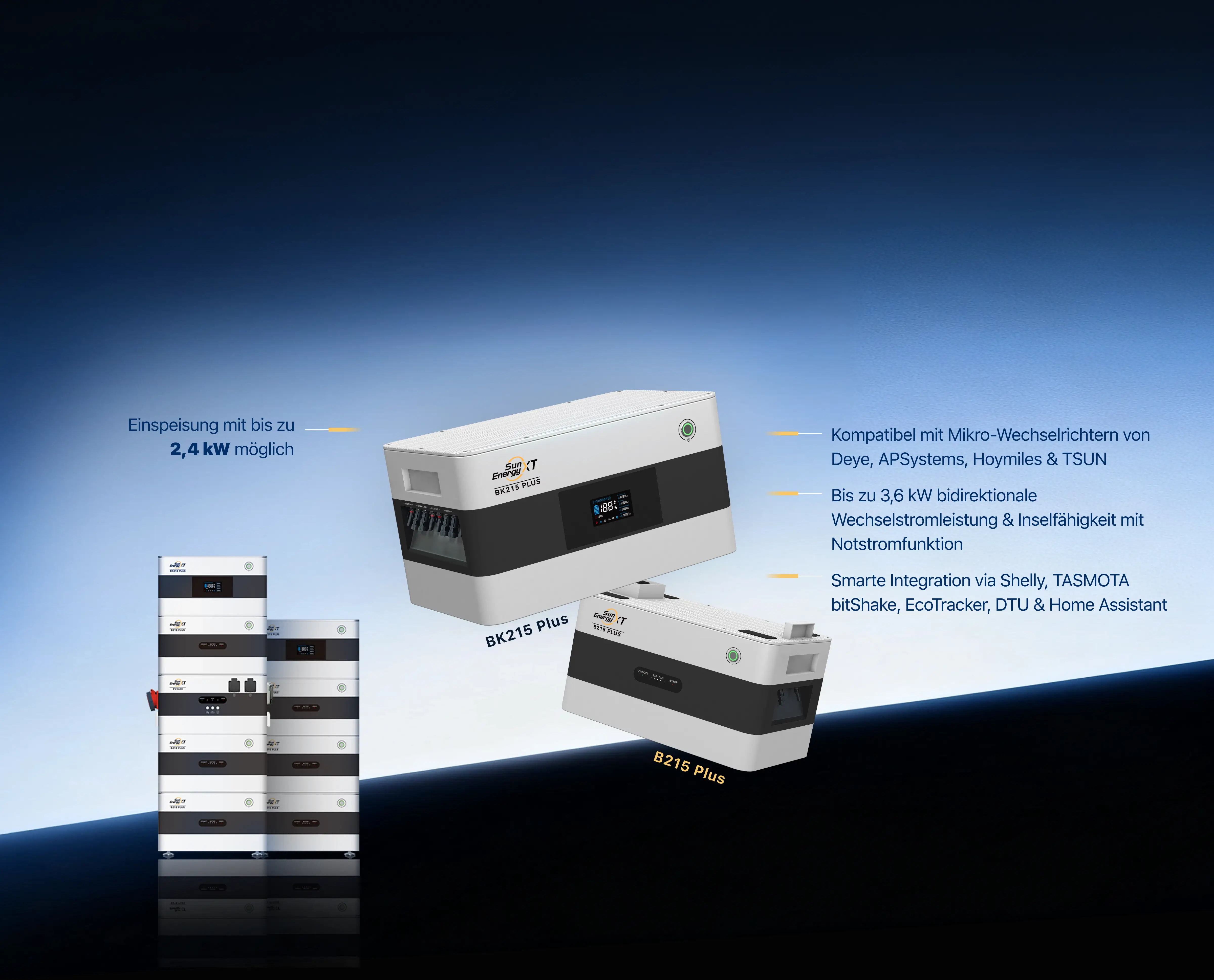 BK215 Plus Kopfspeicher, B215 Plus Erweiterungsspeicher & EV3600 bidirektionaler Wechselrichter