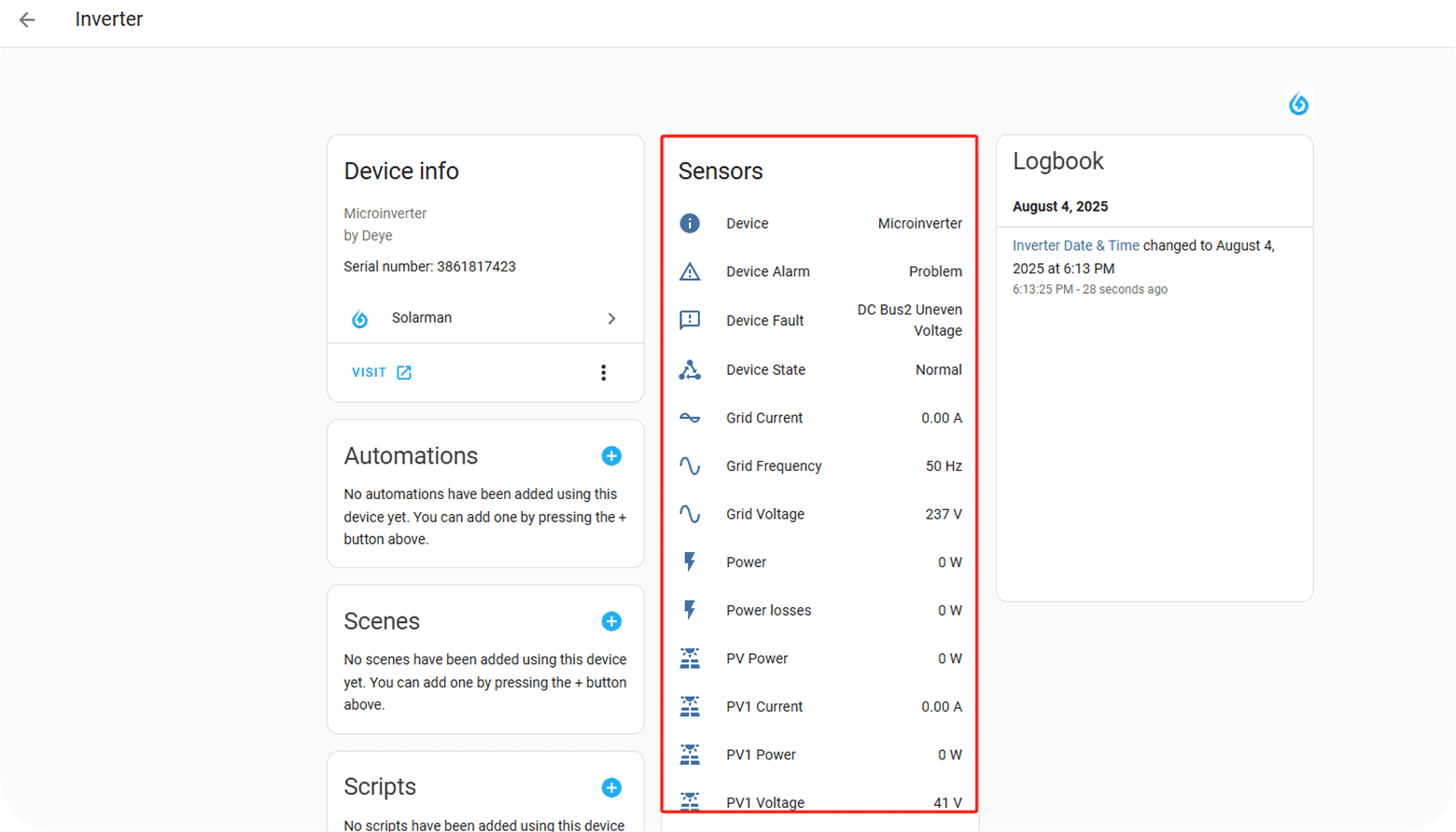 Stellen Sie sicher, dass der Deye-Wechselrichter bereits eingerichtet ist und sich im selben lokalen Netzwerk wie Home Assistant (HA) befindet.