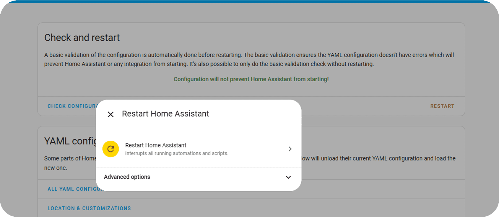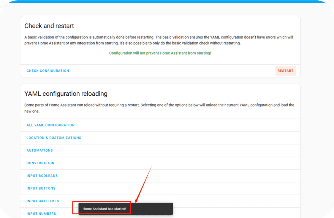 Warten Sie, bis Home Assistant den Neustart abgeschlossen hat.