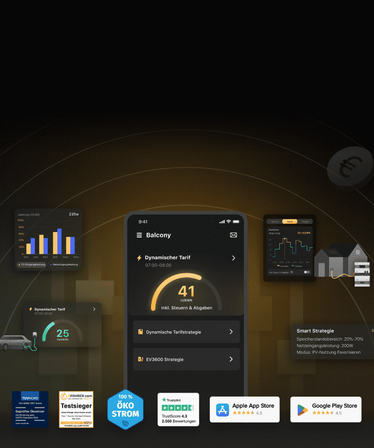 Nutze Echtzeit-Strompreise, um Deine Energiekosten maximal zu optimieren und bis zu 40% zu sparen. Unsere nahtlose Integration in das App-System macht das Energiemanagement kinderleicht, während erneuerbare Energiequellen Deine Stromversorgung nachhaltig und intelligent gestalten. Übernimm die Kontrolle über Deinen Energieverbrauch mit flexiblen Verbrauchsstrategien, die an die dynamischen Preise angepasst sind.