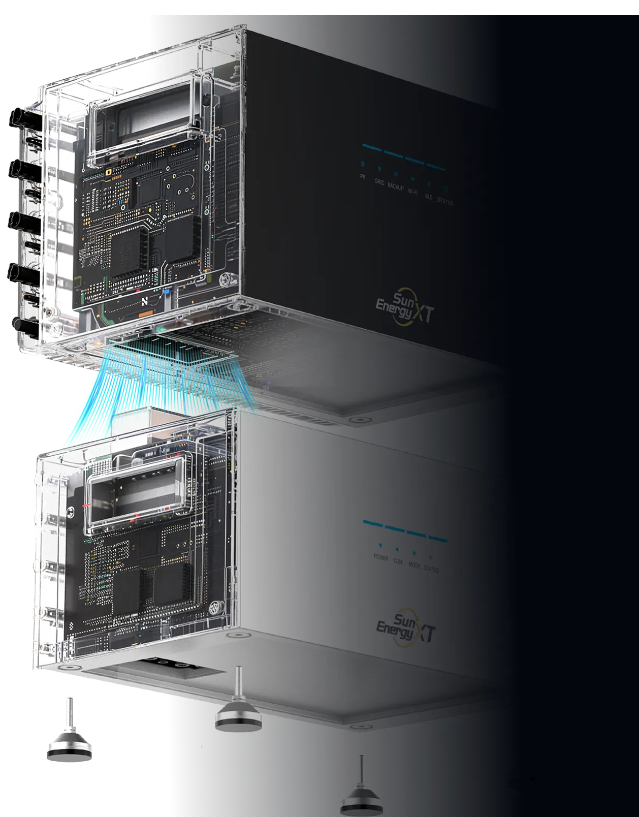 Die meisten Solarspeichersysteme bestehen aus einzelnen, separaten Komponenten. Der SunEnergyXT 500 vereint alles in einem Gerät.