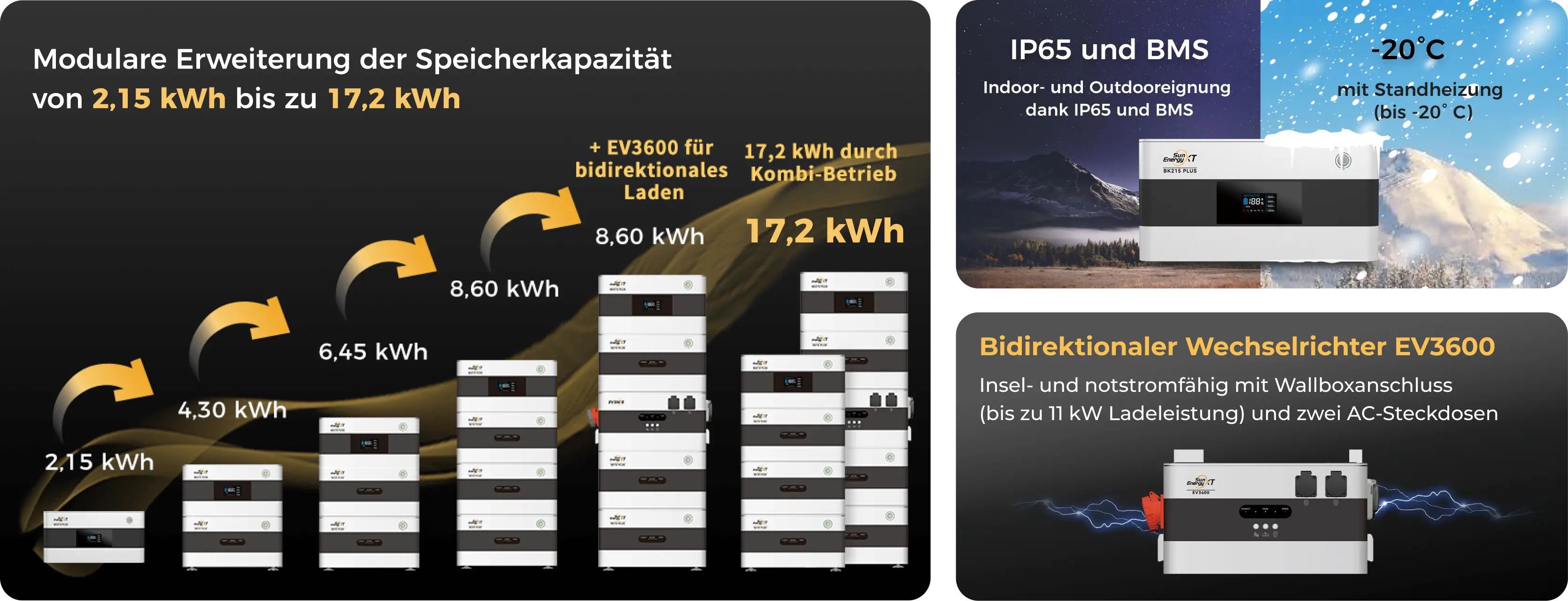 BK215 Plus Kopfspeicher, B215 Plus Erweiterungsspeicher & EV3600 bidirektionaler Wechselrichter
