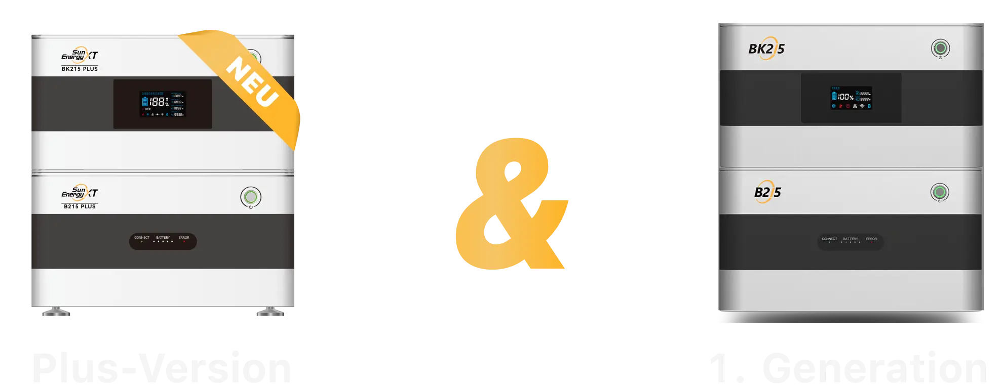 Grundsätzlich sind beide Speicher-Versionen miteinander kompatibel. So kann zum Beispiel ein BK215 mit einem oder mehreren B215 Plus Speichern betrieben werden. Ein BK215 Plus kann hingegen keine B215 Erweiterungsspeicher steuern.