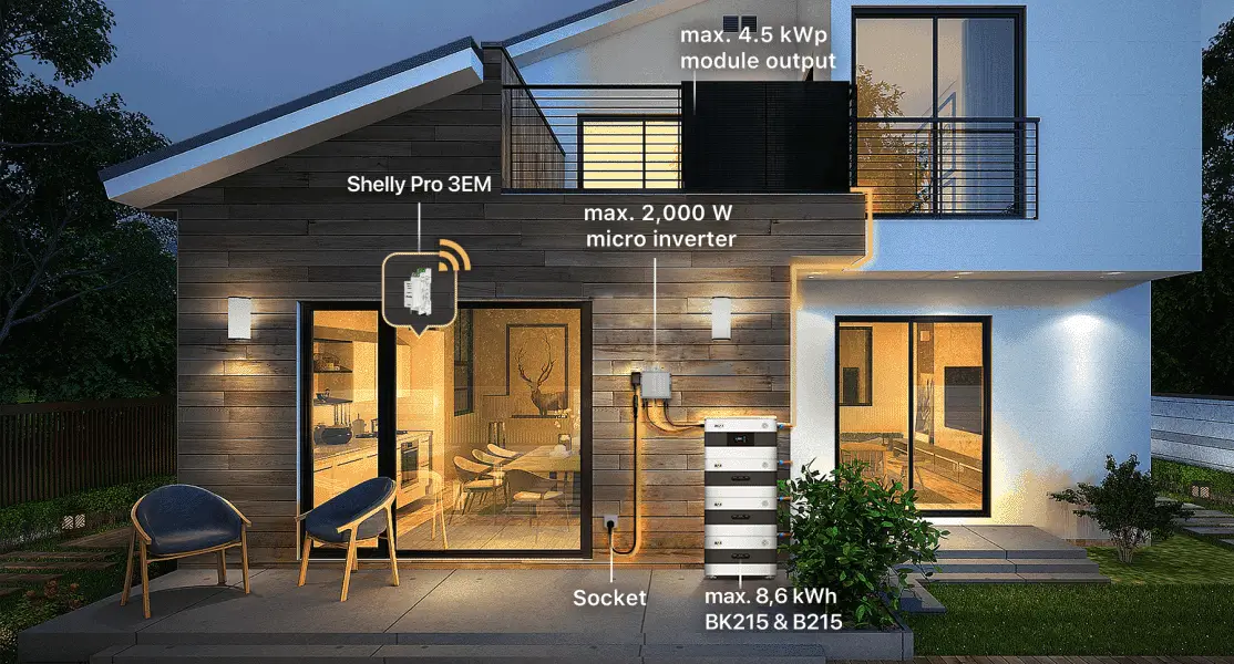 10 PV modules + micro inverter (800W to 2,000W) + BK215 + 3xB215