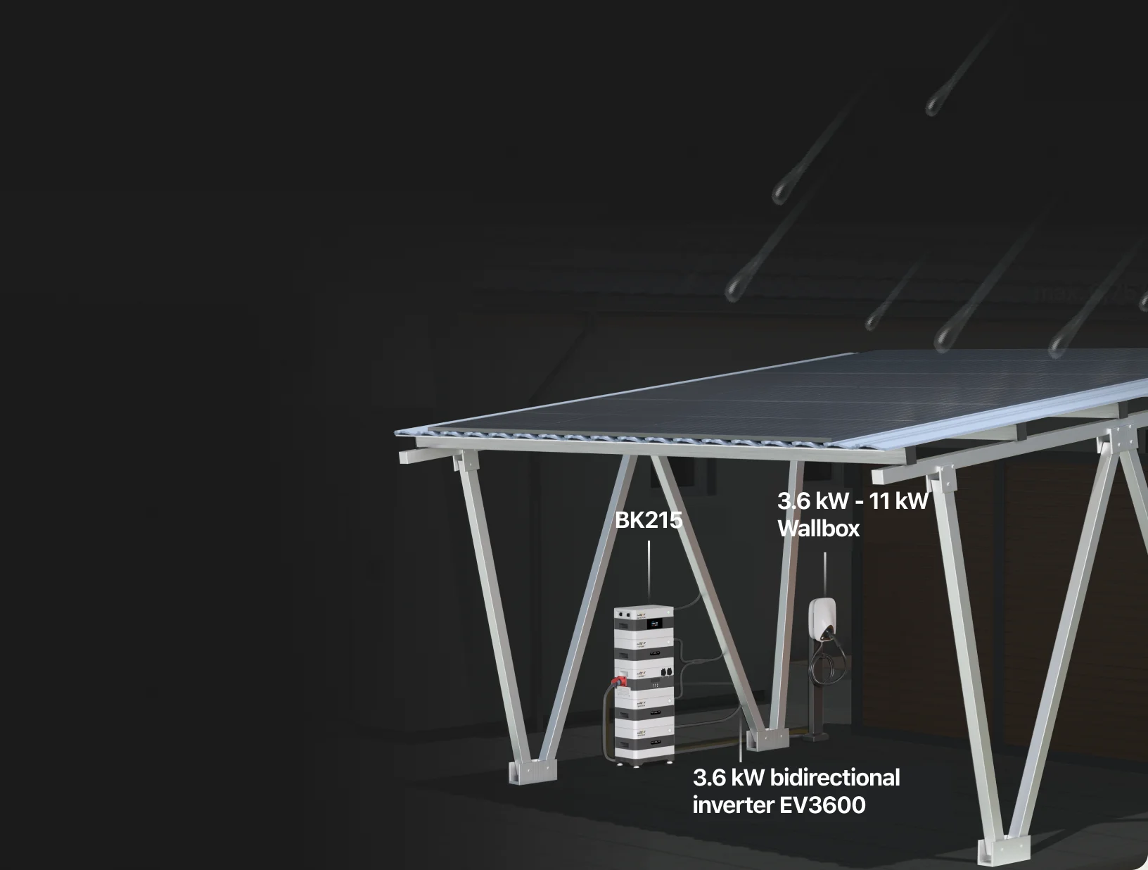 Off-grid capability thanks to solar panels and integrated EV3600 bi-directional inverter