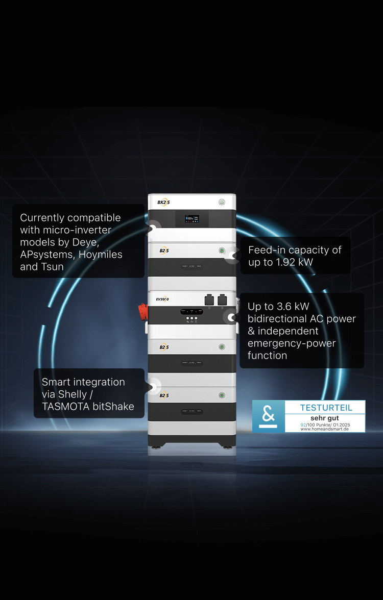Expand your BK215 head storage unit with up to 3 extension storage units, 2.15 kWh each, for a maximum storage capacity of up to 8.6 kWh