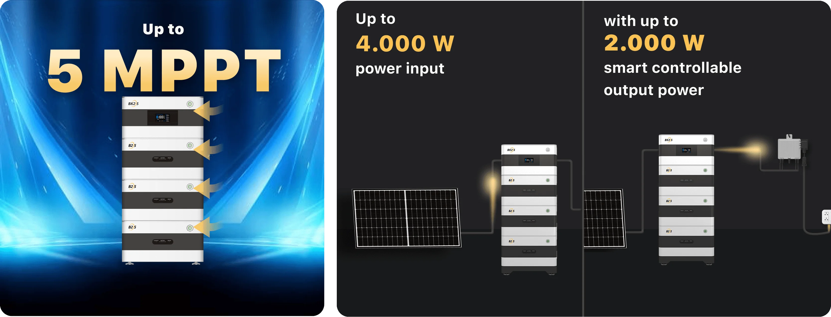 Wenn nur ein BK215-Speicher vorhanden ist, beträgt die maximale Ladeleistung 1 kW. Bei einem BK215-Speicher und einem oder mehreren B215-Erweiterungsspeichern kann die maximale Ladeleistung 2,4 kW erreichen.