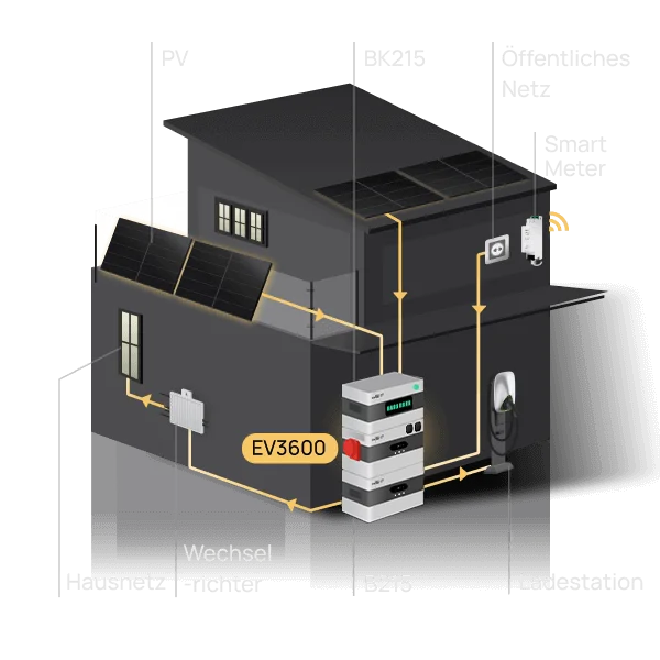 Mit dem EV3600 erweiterst Du Deine Anlage nicht nur um die Möglichkeit des bidirektionalen Ladens, sondern machst sie gleichzeitig notstrom- und inselfähig. Egal ob Du Dein E-Auto mit PV-Strom laden möchtest, oder überschüssige Energie aus Deiner Dach-PV-Anlage automatisch zwischenspeichern willst, der EV3600 eröffnet Dir eine Vielzahl an neuen Möglichkeiten. Auch Deine Verbraucher lassen sich problemslos direkt an den EV3600 anschließen und mit der neuen Vehicle-to-Load-to-Home Funktion kannst Du Dein E-Auto in einen mobilen Energiespeicher verwandeln.