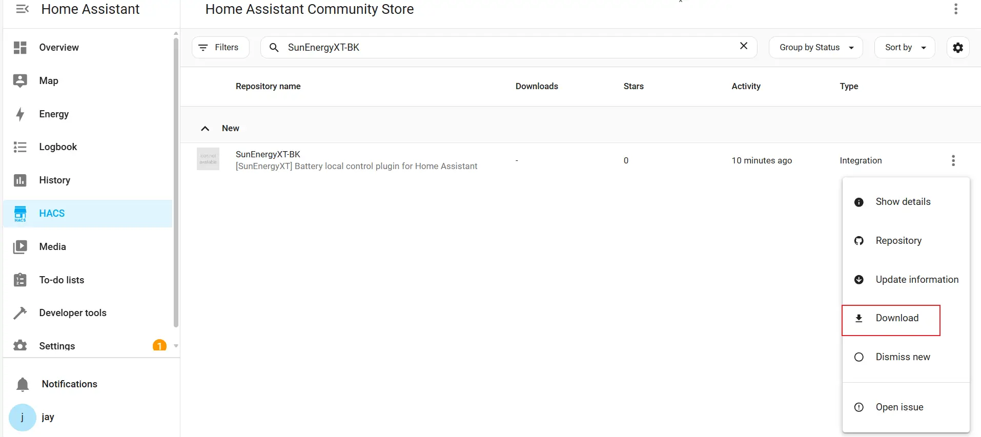 1. After closing the download pop-up window, the SunEnergyXT-BK plugin will appear under the Pending "RESTART" section.