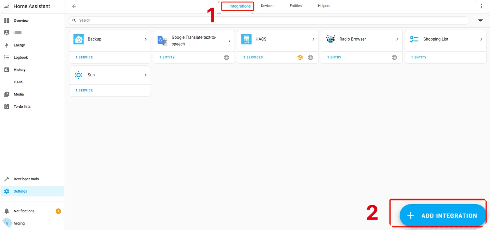 Open your computer browser and visit http://homeassistant.local:8123 to access the Home Assistant web portal. (Ensure your computer, Home Assistant, and the device are on the same local network.)